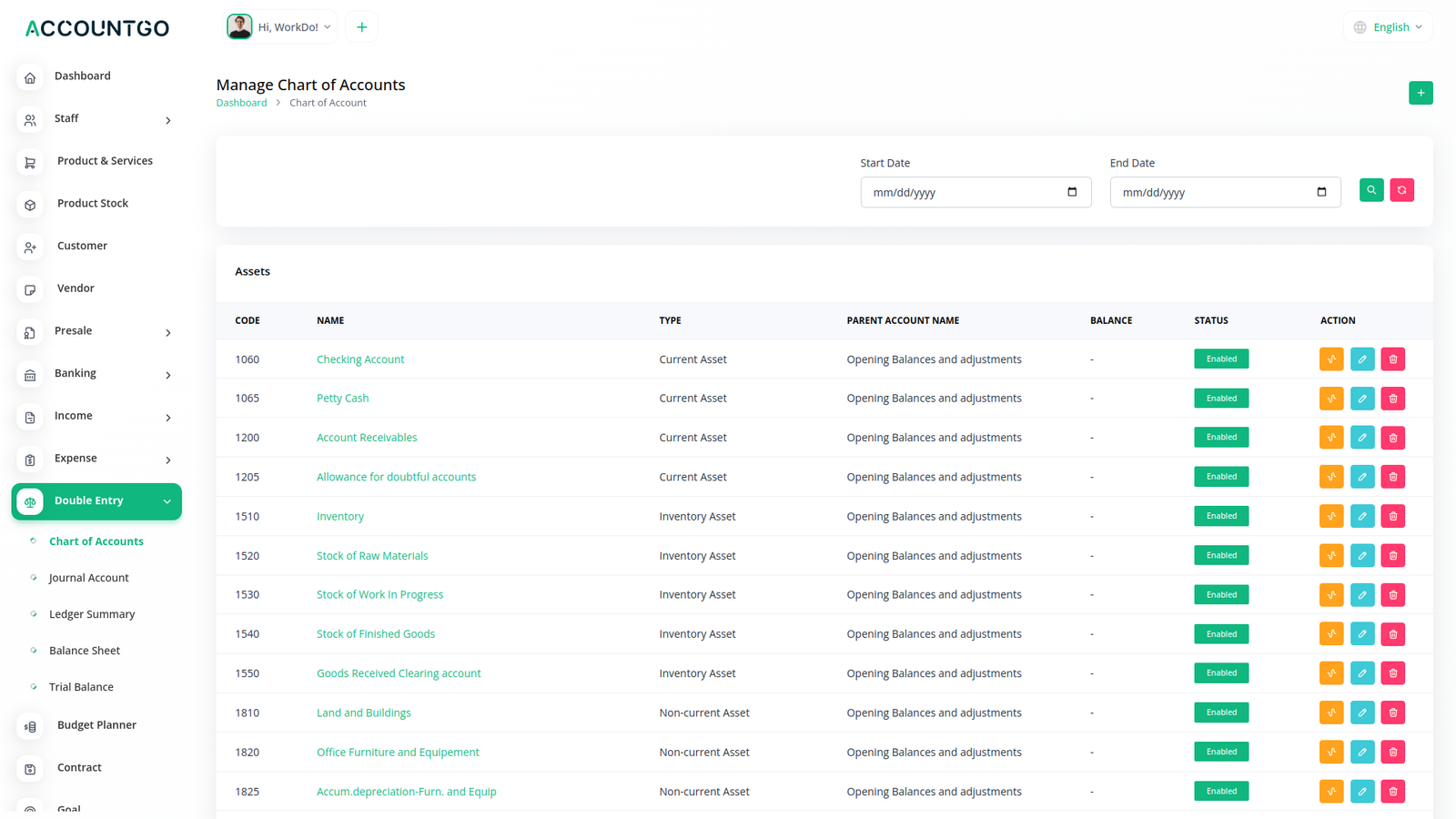 Chart of Accounts
